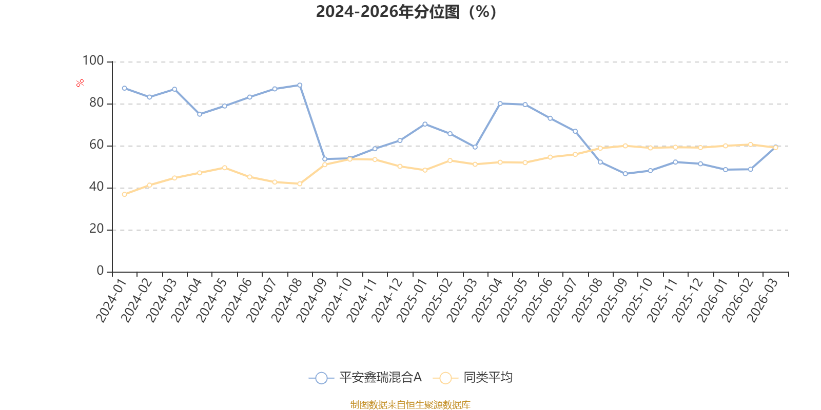 通过所选区间该基金净值增长率分位图,可以观察该基金与同类基金业绩比较情况。图为坐标原点到区间内某时点的净值增长率在同类基金中的分位数。