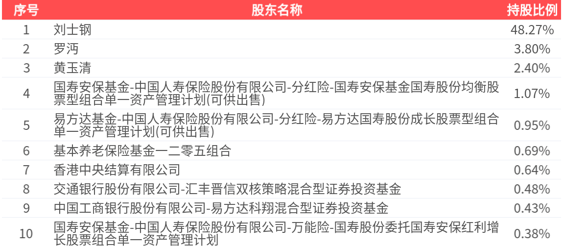 公司股东户数为1.77万户,前十大股东持股数量为8176.60万股,占总股本比例为59.11%,前十大股东持股情况如下: