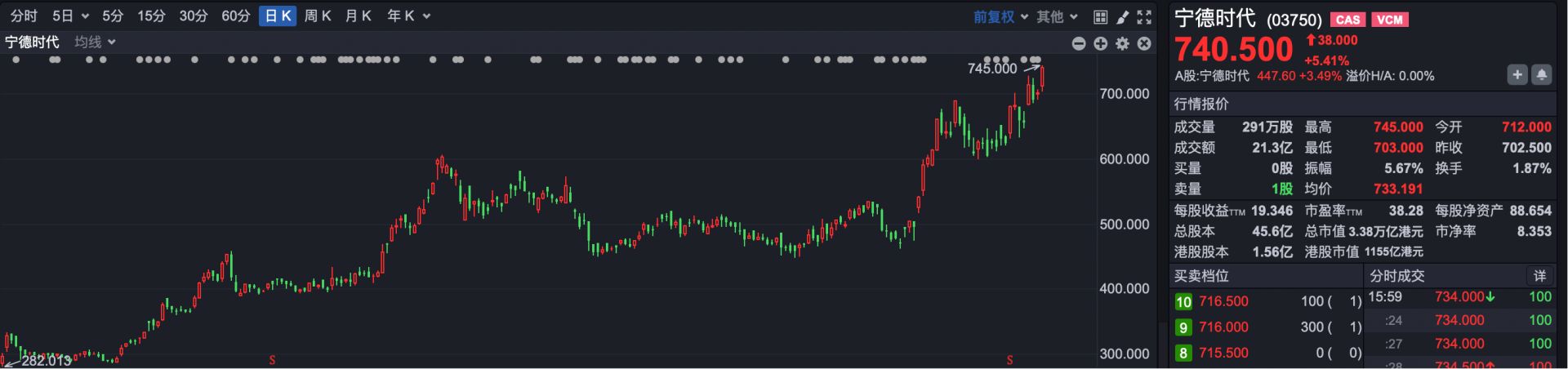 重要成分股方面,宁德时代(HK03750)大涨近5%,再创港股上市以来新高。