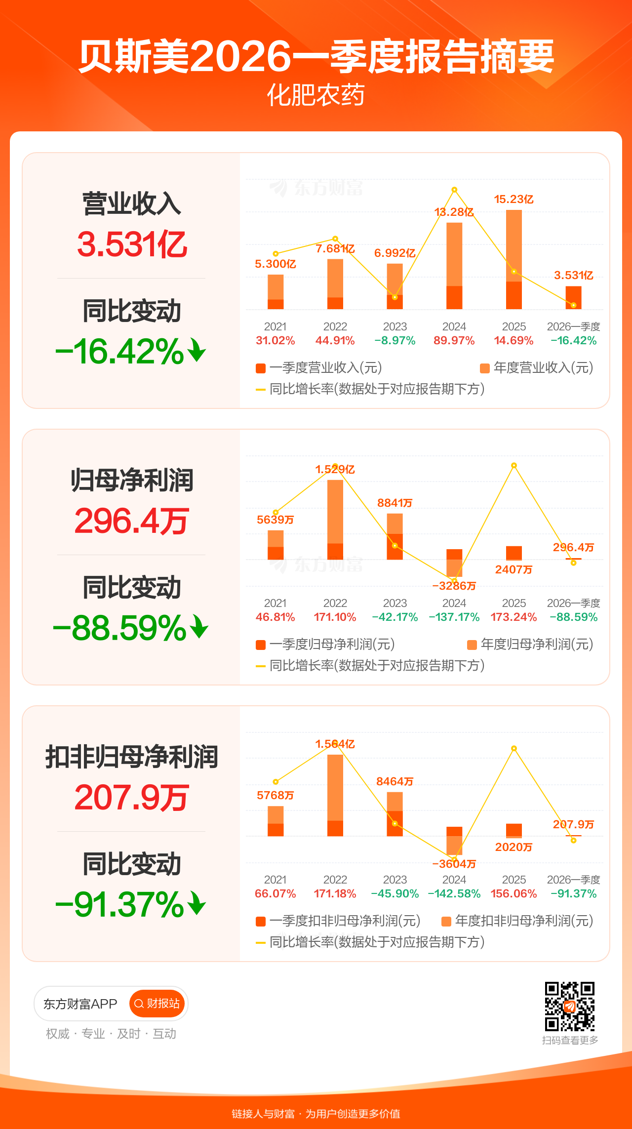 图解财报:贝斯美一季度归母净利润296.41万元,同比减少88.59%