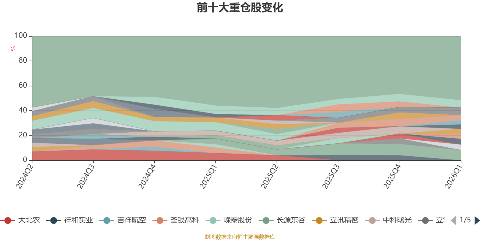 截至2026年一季度末,基金十大重仓股分别是长源东谷、寒武纪、海光信息、钧达股份、北方稀土、明阳智能、银轮股份、中国巨石、科达制造、大中矿业。