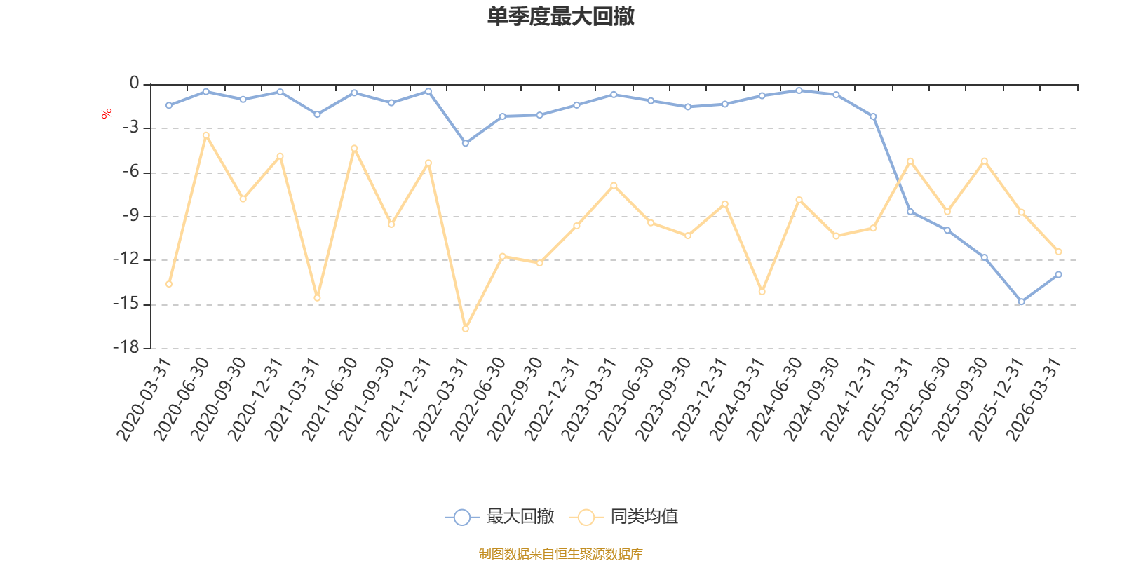 截至4月20日,基金近三年最大回撤为16.51%,同类可比基金排名228/1262。单季度最大回撤出现在2025年四季度,为14.83%。