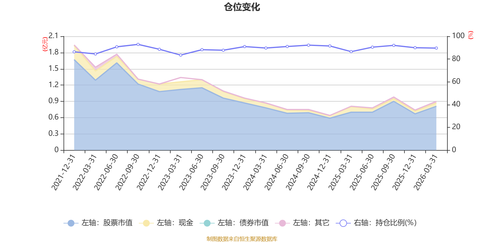据定期报告数据统计,近三年平均股票仓位为90.01%,同类平均为84.02%。2022年三季度末基金达到92.91%的最高仓位,2023年一季度末最低,为83.5%。