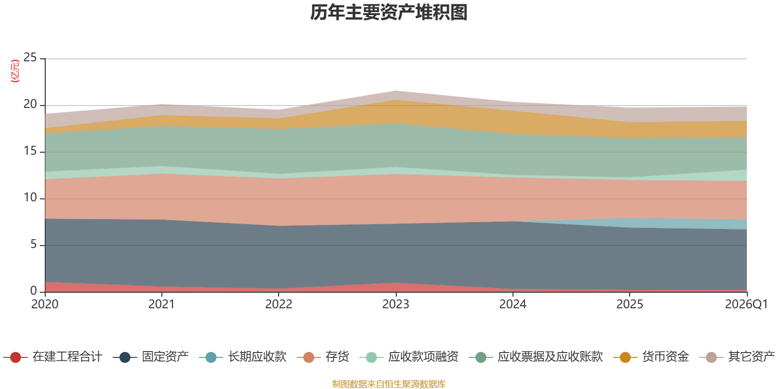 资产重大变化方面,截至2026年一季度末,公司应收款项融资较上年末增加329%,占公司总资产比重上升4.65个百分点;应收票据及应收账款较上年末减少17.79%,占公司总资产比重下降3.93个百分点;交易性金融资产合计占公司总资产的1.51%,上年末为0;一年内到期的非流动资产较上年末减少63.07%,占公司总资产比重下降1.4个百分点。
