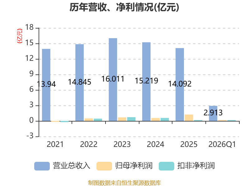 负债重大变化方面,截至2026年一季度末,公司短期借款较上年末增加52.05%,占公司总资产比重上升2.2个百分点;应付票据及应付账款较上年末减少7.64%,占公司总资产比重下降1.18个百分点;一年内到期的非流动负债较上年末减少62.96%,占公司总资产比重下降0.94个百分点;应付职工薪酬较上年末减少23.84%,占公司总资产比重下降0.36个百分点。