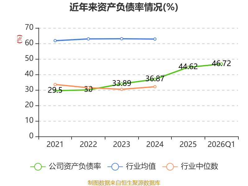 负债重大变化方面,截至2026年一季度末,公司应付票据及应付账款较上年末增加50.7%,占公司总资产比重上升2.06个百分点;长期借款较上年末增加12.96%,占公司总资产比重上升1.5个百分点;短期借款较上年末减少0.49%,占公司总资产比重下降0.67个百分点;一年内到期的非流动负债较上年末减少10.88%,占公司总资产比重下降0.66个百分点。