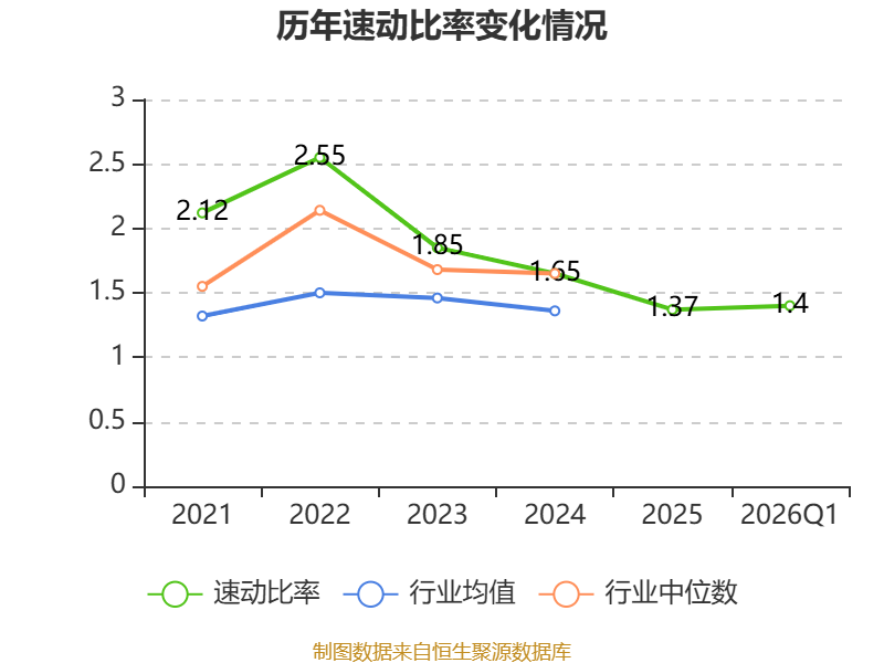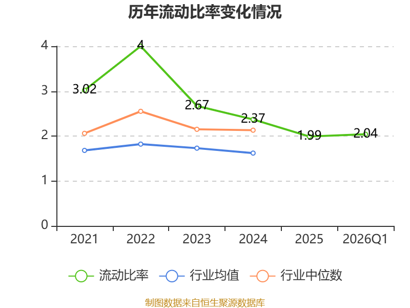 2026年第一季度,公司流动比率为2.04,速动比率为1.4。