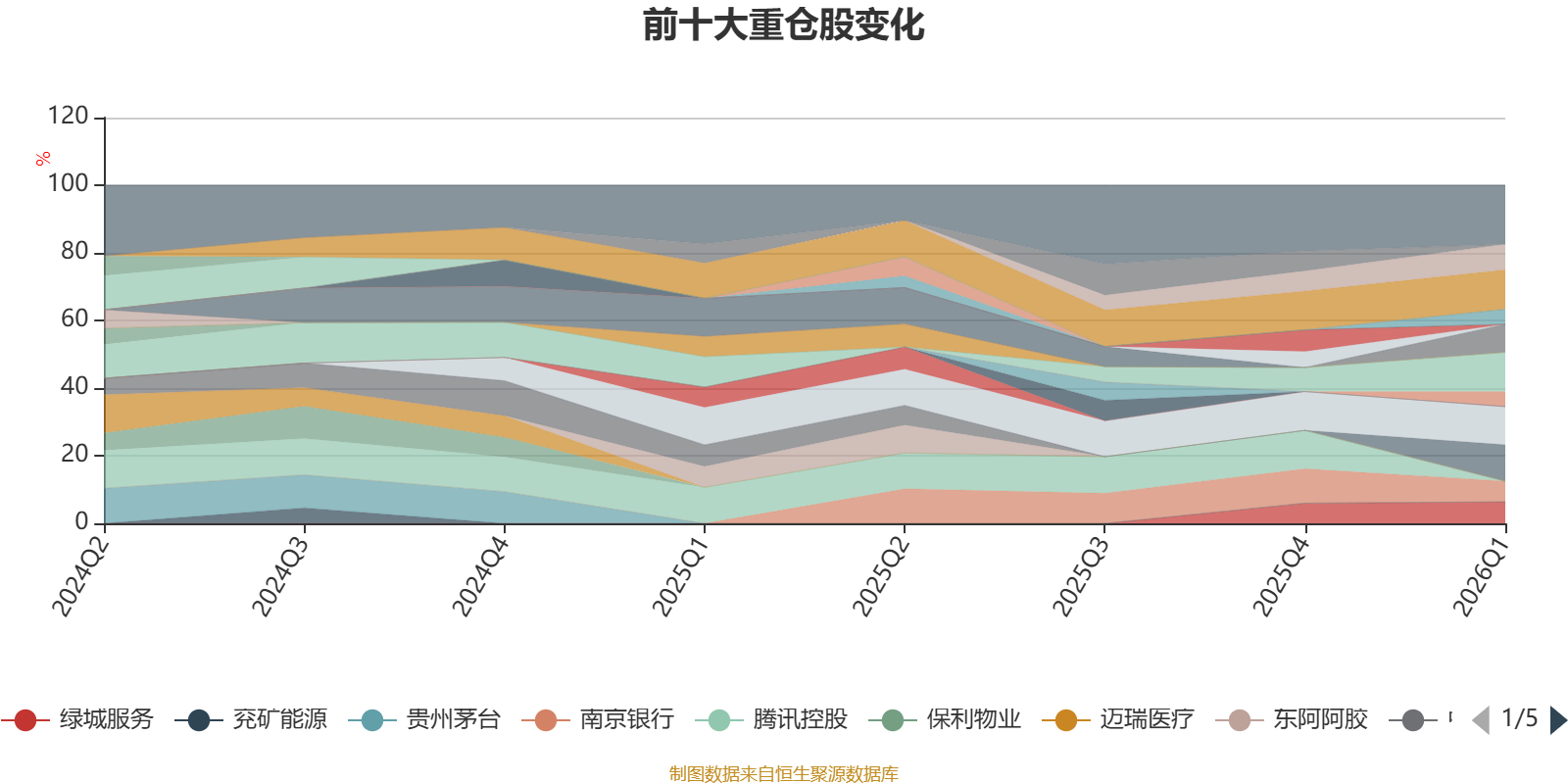 该基金持股集中度较高,近2年前十大重仓股集中度长期超过60%。截至2026年一季度末,基金十大重仓股分别是杭州银行、宁德时代、宁波银行、徽商银行、吉利汽车、中国平安、绿城服务、南京银行、齐鲁银行、渝农商行、重庆农村商业银行。