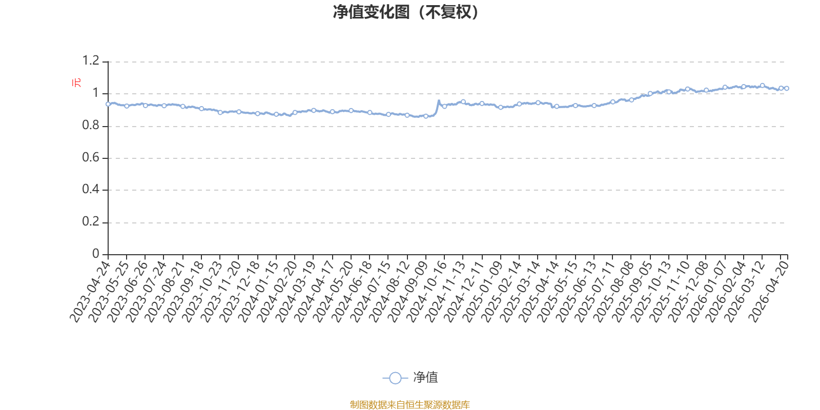 该基金属于偏债混合型基金。截至4月20日,单位净值为1.033元。基金经理是黄军锋。