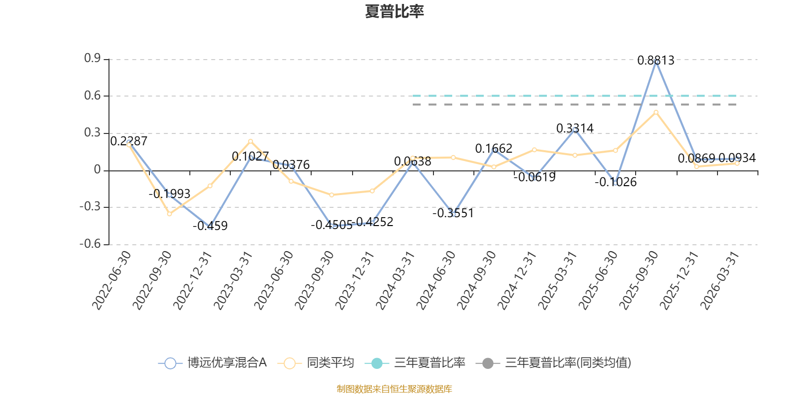 截至3月31日,基金近三年夏普比率为0.6032,位于同类可比基金259/550。