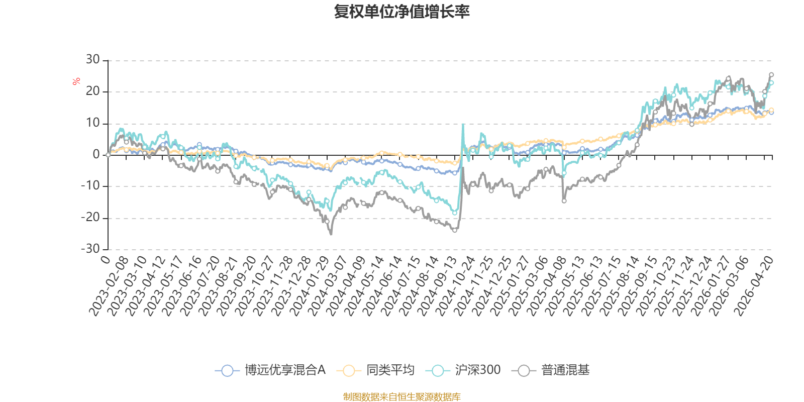 截至4月20日,博远优享混合A近三个月复权单位净值增长率为-0.87%,位于同类可比基金540/629;近半年复权单位净值增长率为3.00%,位于同类可比基金267/629;近一年复权单位净值增长率为12.63%,位于同类可比基金117/629;近三年复权单位净值增长率为9.11%,位于同类可比基金371/582。
