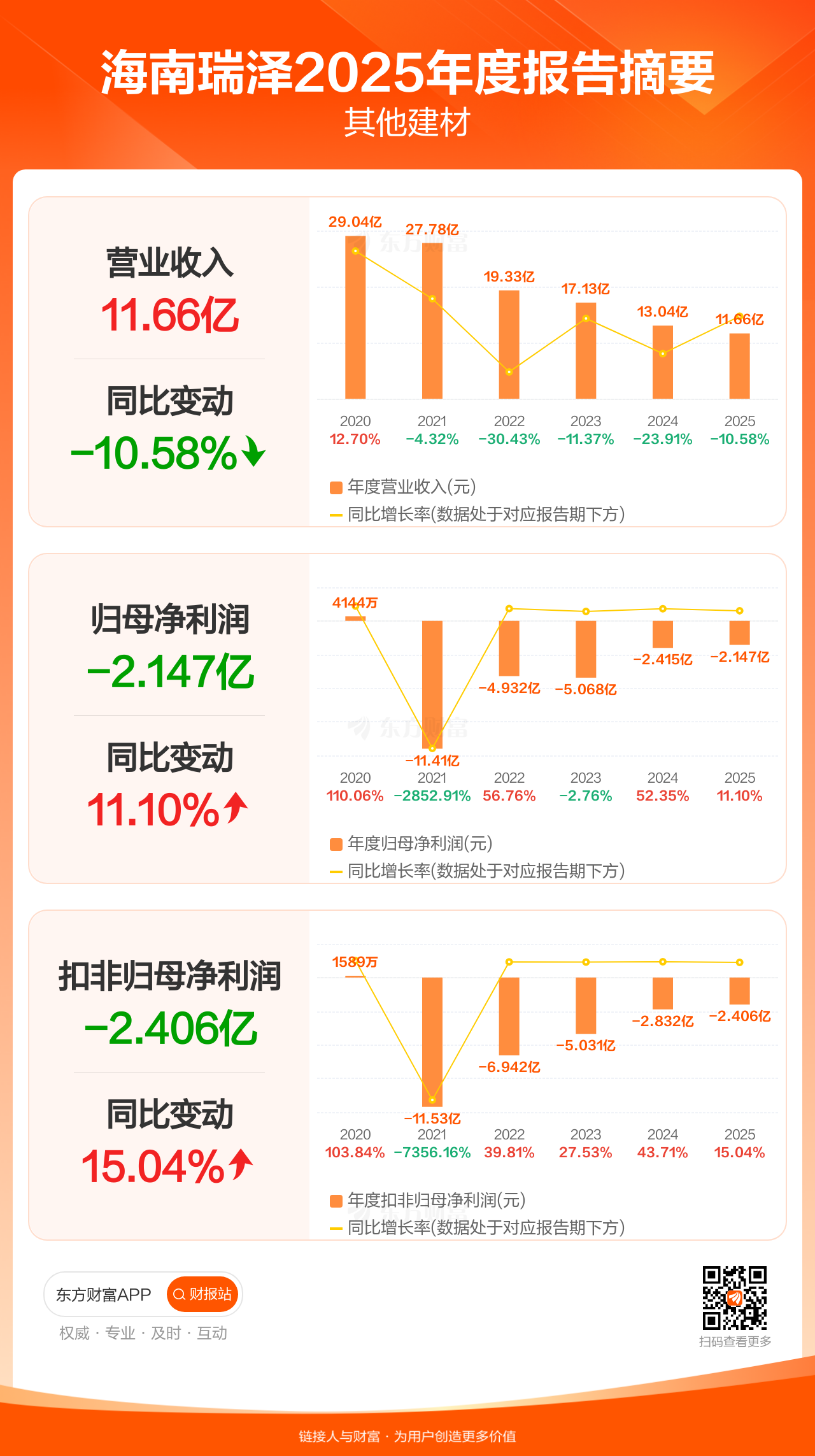 图解财报:海南瑞泽全年归母净利润-2.15亿元,上年同期-2.42亿元