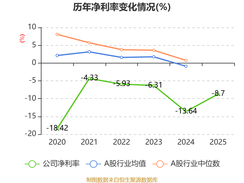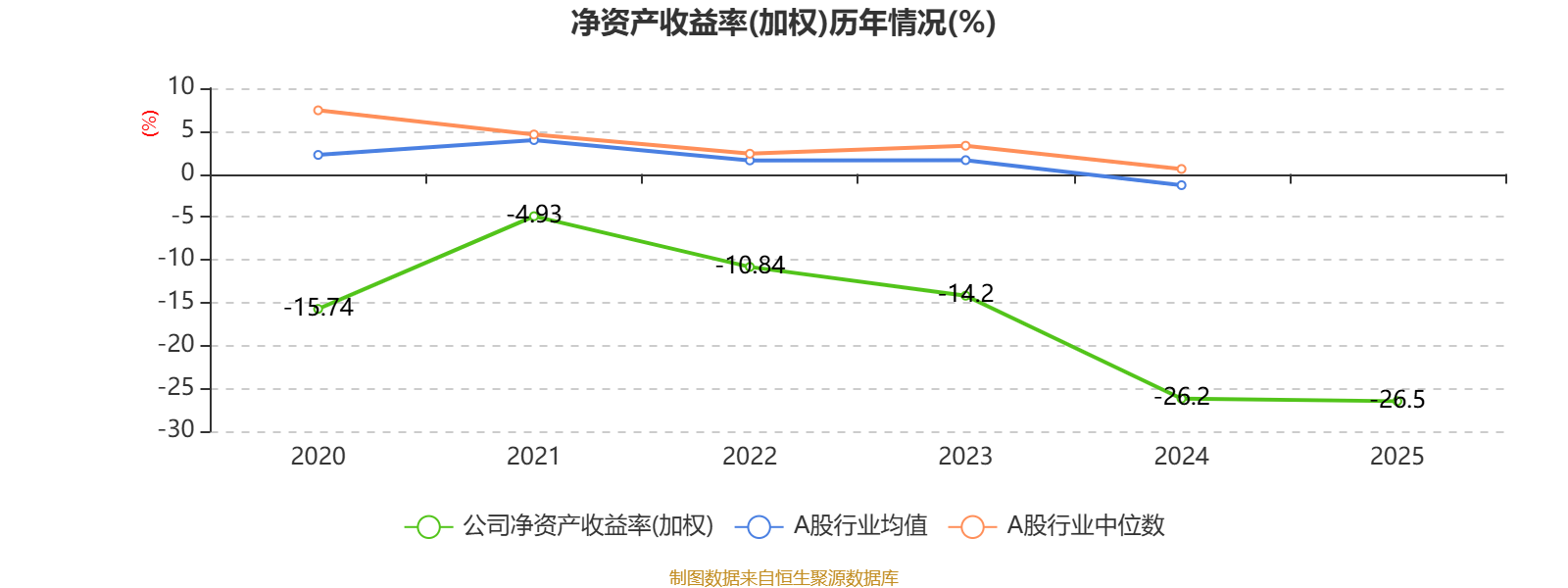 数据显示,2025年公司平均净资产收益率为-26.5%,较上年同期下降0.3个百分点。