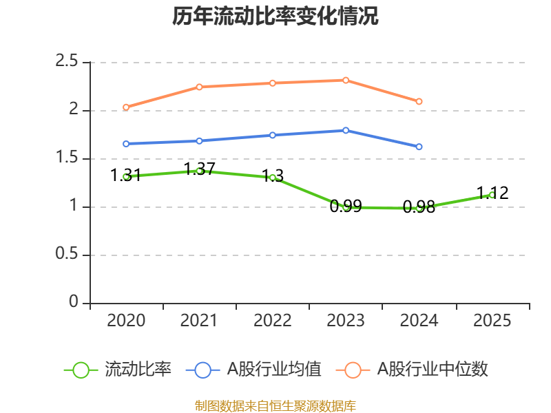 2025年,公司流动比率为1.12,速动比率为1.08。