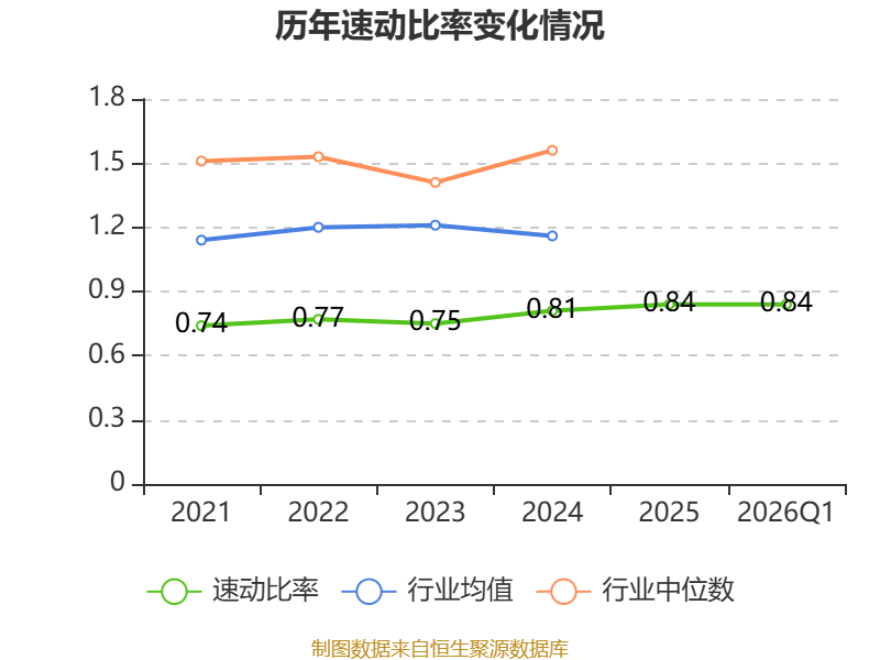 2026年第一季度,公司流动比率为1.21,速动比率为0.84。