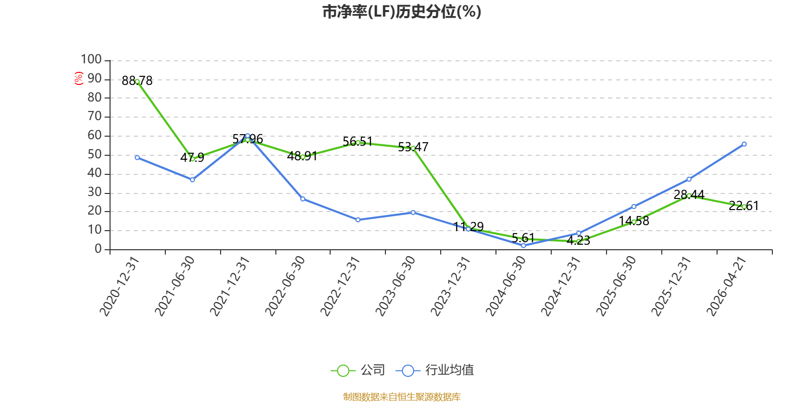 市盈率、市净率为负时,不显示当期分位数,会导致折线图中断。