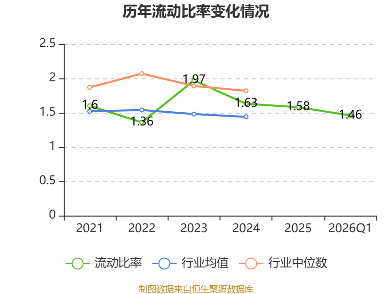 2026年第一季度,公司流动比率为1.46,速动比率为1.18。