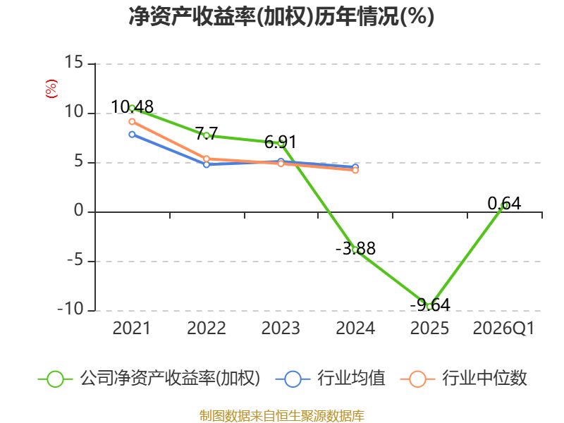 盈利能力方面, 2026年一季度公司加权平均净资产收益率为0.64%,同比上升0.15个百分点。公司2026年第一季度投入资本回报率为-0.22%,较上年同期下降0.95个百分点。