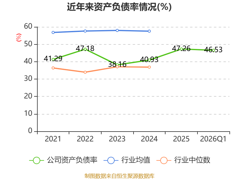 负债重大变化方面,截至2026年一季度末,公司一年内到期的非流动负债较上年末增加657.62%,占公司总资产比重上升3.38个百分点;应付票据及应付账款较上年末减少11.52%,占公司总资产比重下降2.26个百分点;长期借款较上年末减少44.62%,占公司总资产比重下降1.87个百分点;短期借款较上年末减少16.27%,占公司总资产比重下降1.76个百分点。