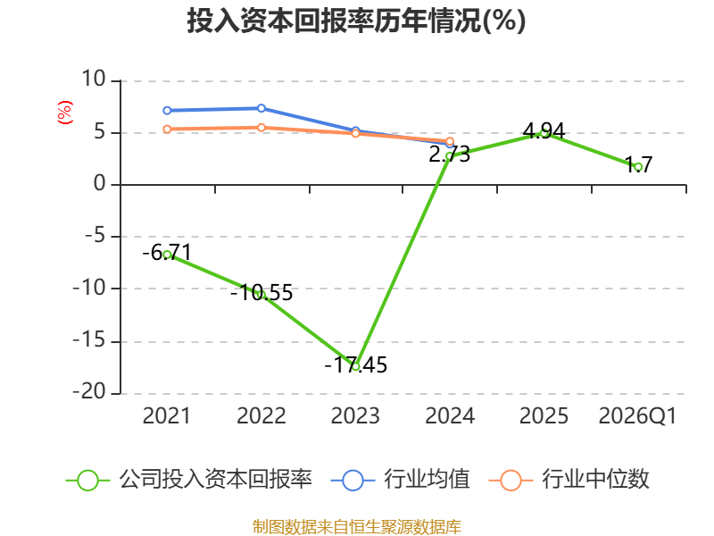 盈利能力方面, 2026年一季度公司加权平均净资产收益率为1.11%,同比上升0.01个百分点。公司2026年第一季度投入资本回报率为1.7%,较上年同期上升0.4个百分点。