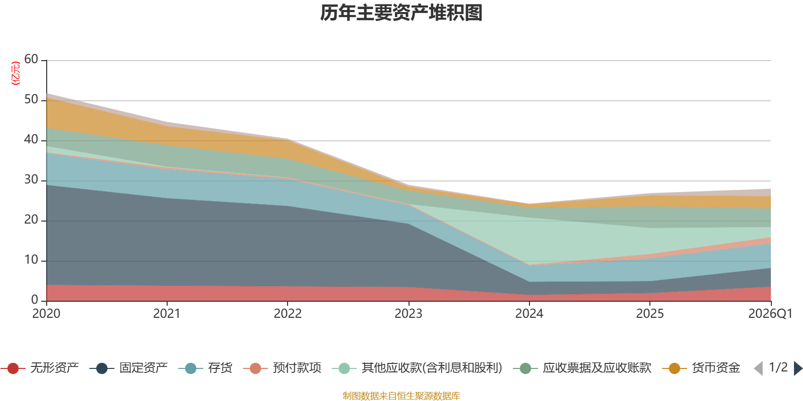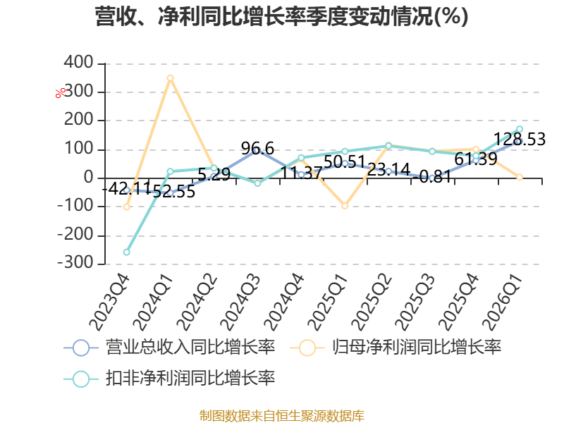 资产重大变化方面,截至2026年一季度末,公司其他应收款(含利息和股利)较上年末减少60.8%,占公司总资产比重下降15.04个百分点;固定资产较上年末增加57.26%,占公司总资产比重上升5.67个百分点;无形资产较上年末增加83.41%,占公司总资产比重上升5.4个百分点;应收票据及应收账款较上年末减少14.41%,占公司总资产比重下降3.59个百分点。