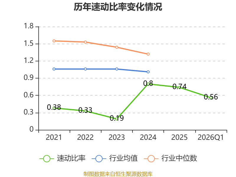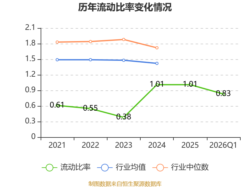 2026年第一季度,公司流动比率为0.83,速动比率为0.56。
