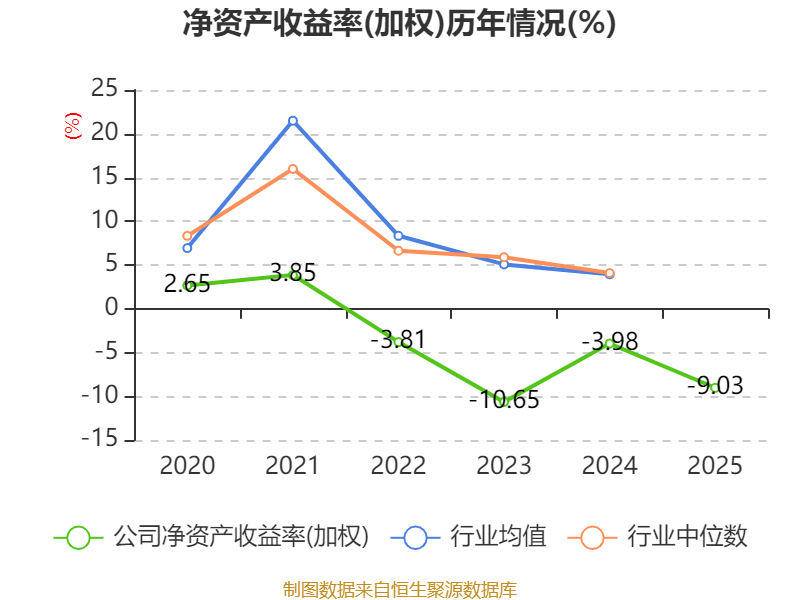 数据显示,2025年公司加权平均净资产收益率为-9.03%,较上年同期下降5.05个百分点。公司2025年投入资本回报率为-7.84%,较上年同期下降4.39个百分点。