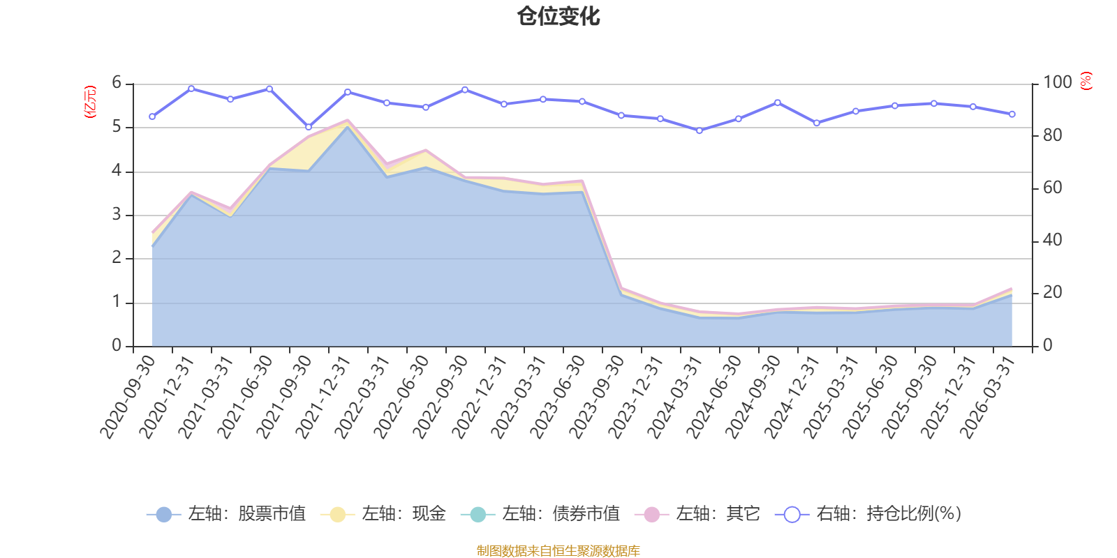 据定期报告数据统计,近三年平均股票仓位为88.98%,同类平均为88.31%。2020年末基金达到98.12%的最高仓位,2024年一季度末最低,为82.17%。