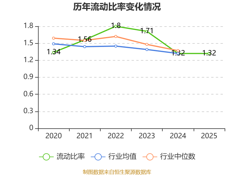2025年,公司流动比率为1.32,速动比率为0.9。