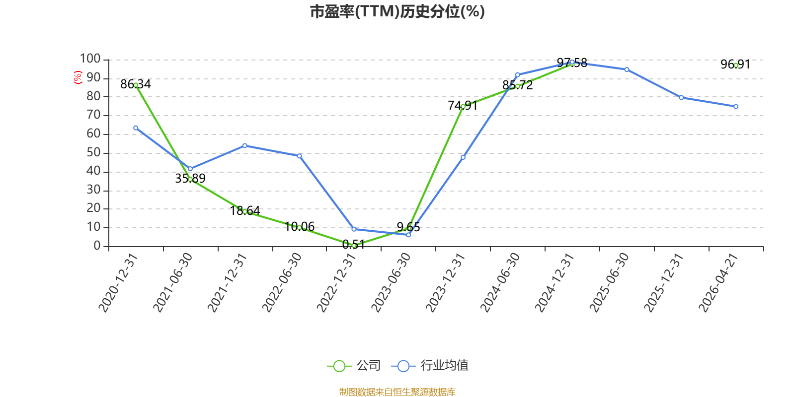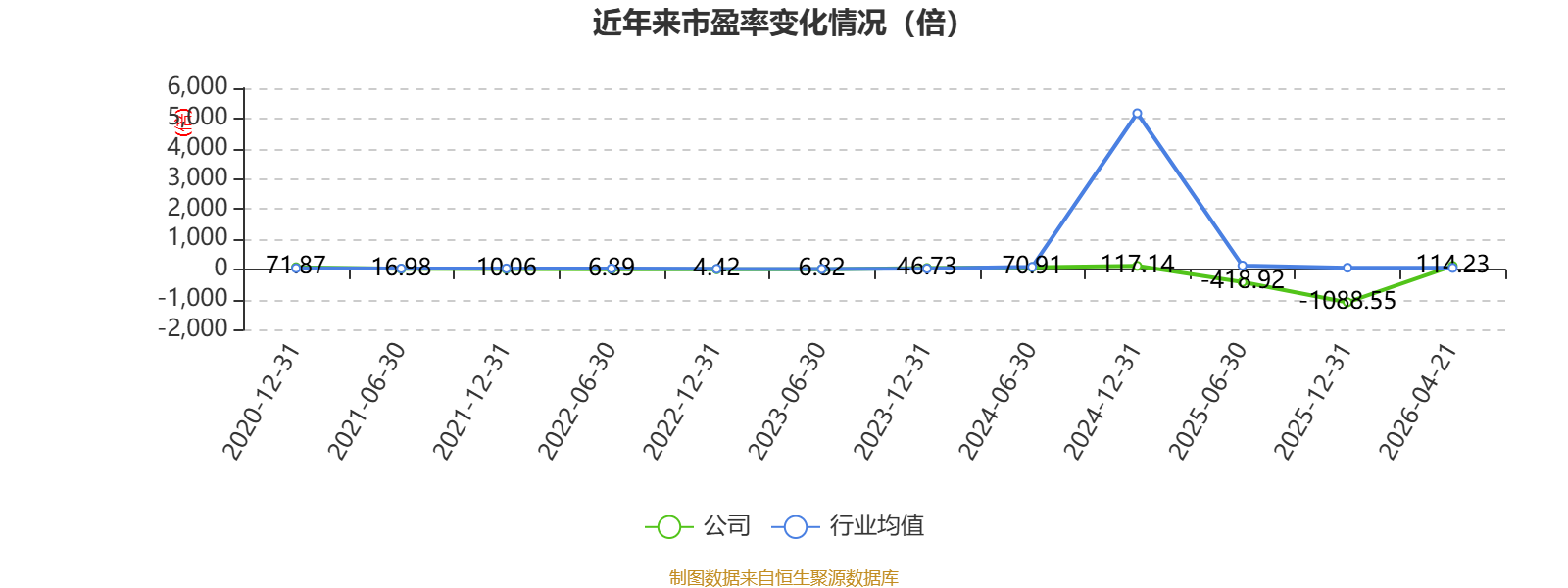 市盈率、市净率为负时,不显示当期分位数,会导致折线图中断。