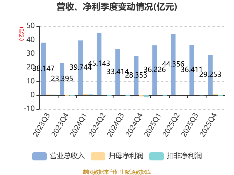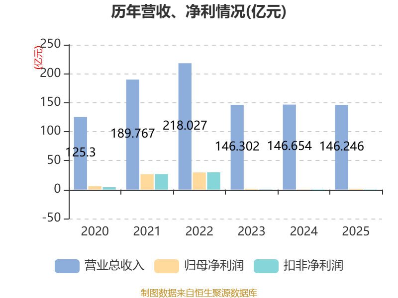 中证智能财讯新安股份(600596)4月22日披露2025年年度报告。2025年,公司实现营业总收入146.25亿元,同比下降0.28%;归母净利润1.47亿元,同比增长185.67%;扣非净利润亏损7930.44万元,上年同期亏损1.17亿元;经营活动产生的现金流量净额为9.02亿元,同比增长64.95%;报告期内,新安股份基本每股收益为0.1088元,加权平均净资产收益率为1.18%。公司2025年度分配预案为:拟向全体股东每10股派现1元(含税)。