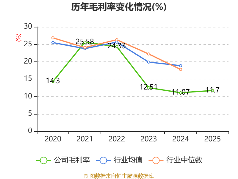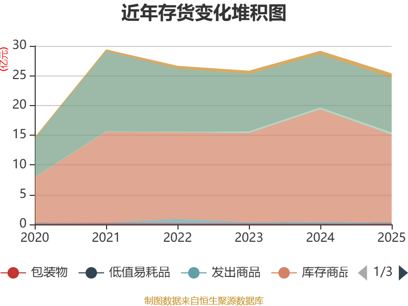 从存货变动来看,截至2025年末,公司存货账面价值为25.38亿元,占净资产的20.37%,较上年末减少3.78亿元。其中,存货跌价准备为7533.85万元,计提比例为2.88%。