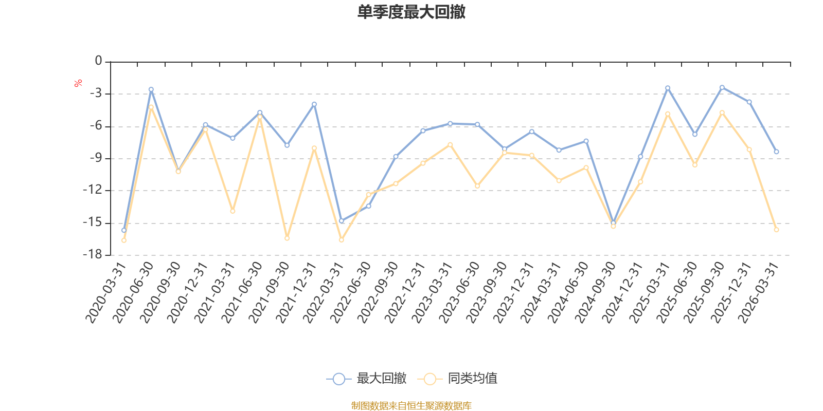截至4月20日,基金近三年最大回撤为20.13%,同类可比基金排名4/30。单季度最大回撤出现在2020年一季度,为15.69%。