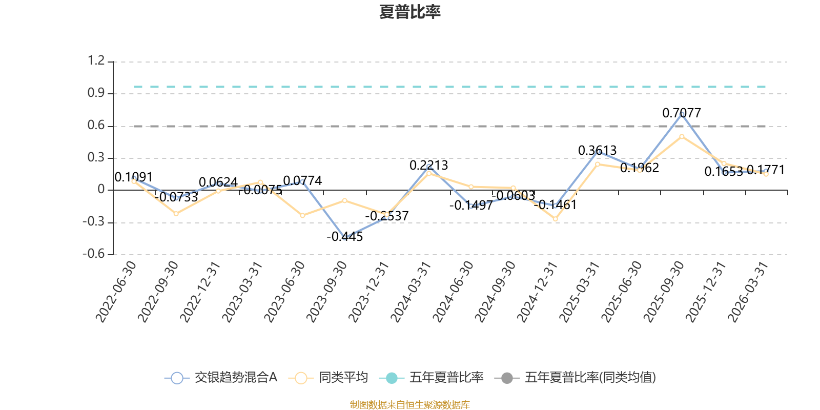 截至3月31日,基金近三年夏普比率为0.6874,位于同类可比基金20/30。