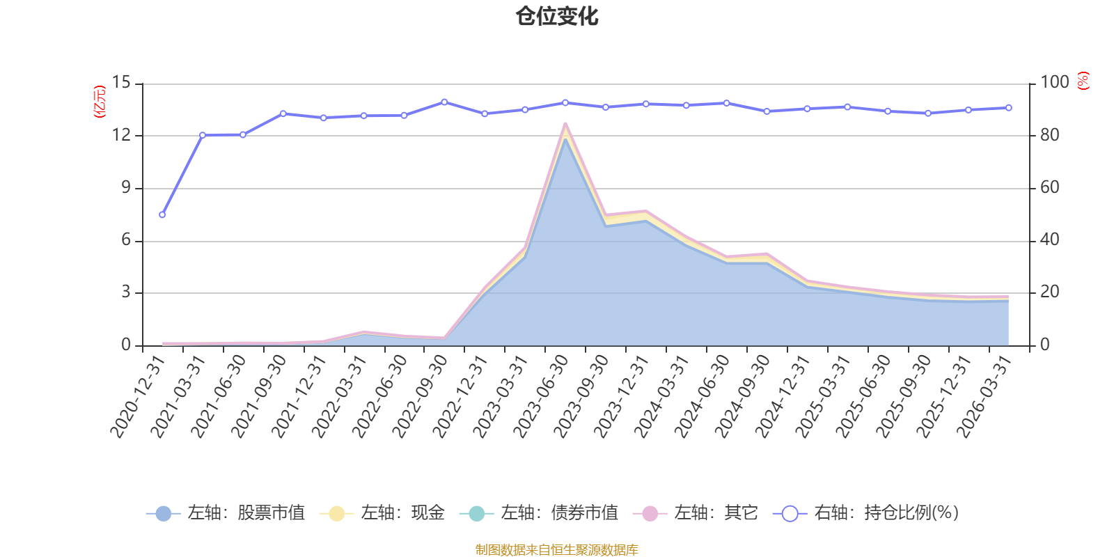 据定期报告数据统计,近三年平均股票仓位为90.82%,同类平均为88.08%。2022年三季度末基金达到92.93%的最高仓位,2020年末最低,为49.98%。
