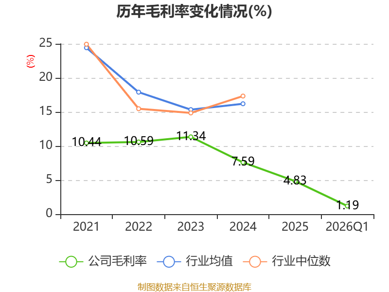 盈利能力方面, 2026年一季度公司加权平均净资产收益率为-2.87%,同比上升0.03个百分点。公司2026年第一季度投入资本回报率为-1.42%,较上年同期上升0.28个百分点。
