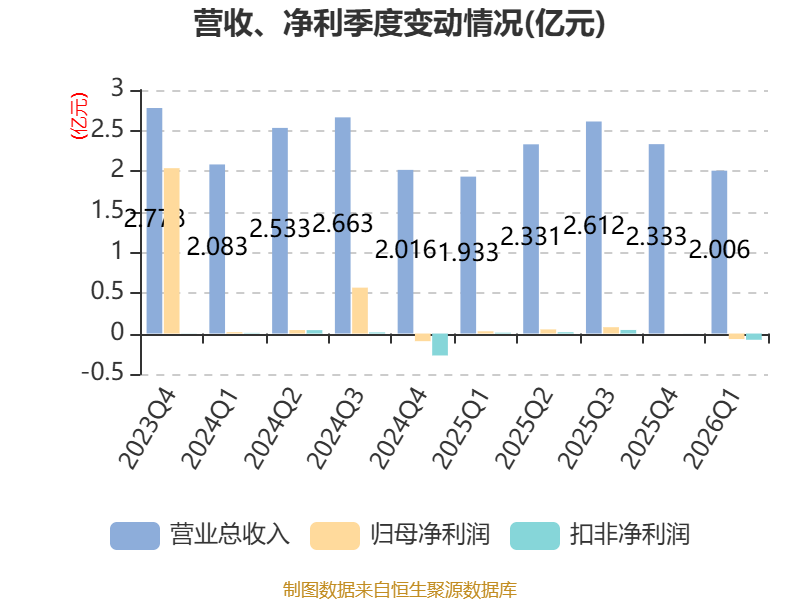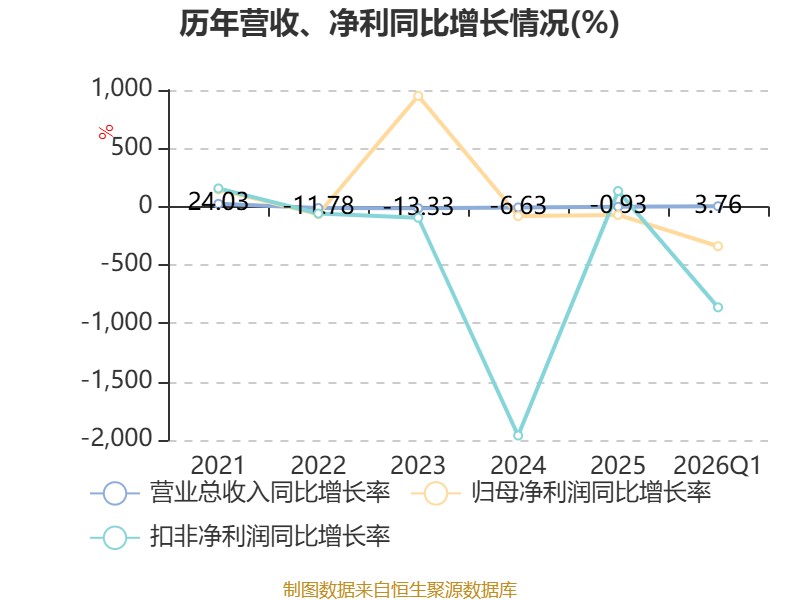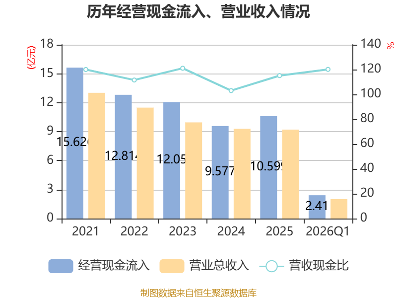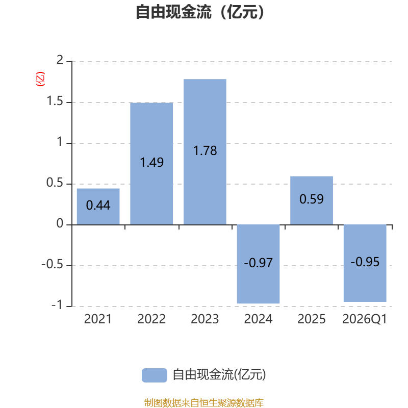 截至2026年一季度末,公司经营活动现金流净额为814.65万元,同比下降88.05%;筹资活动现金流净额-2106.68万元,同比减少2562.74万元;投资活动现金流净额-2533.36万元,上年同期为-1876.57万元。