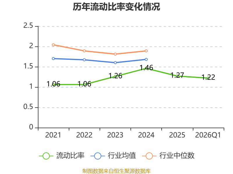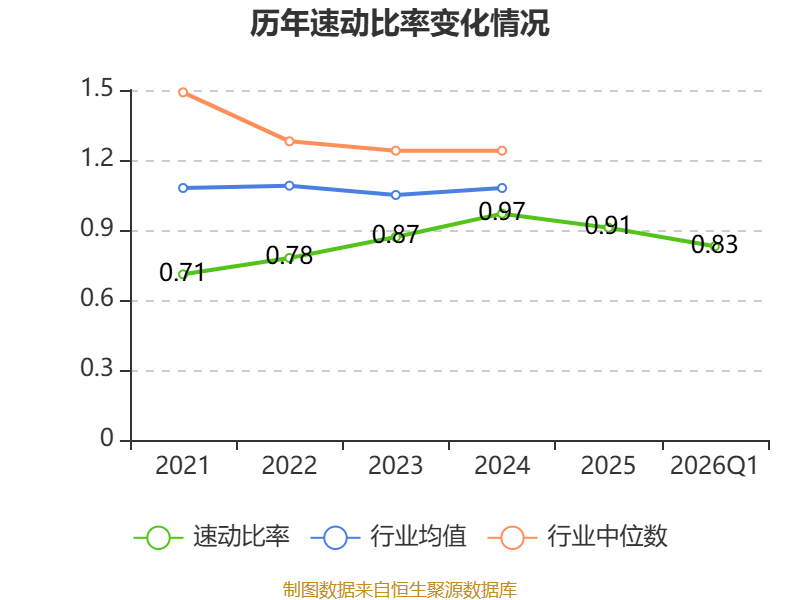 2026年第一季度,公司流动比率为1.22,速动比率为0.83。