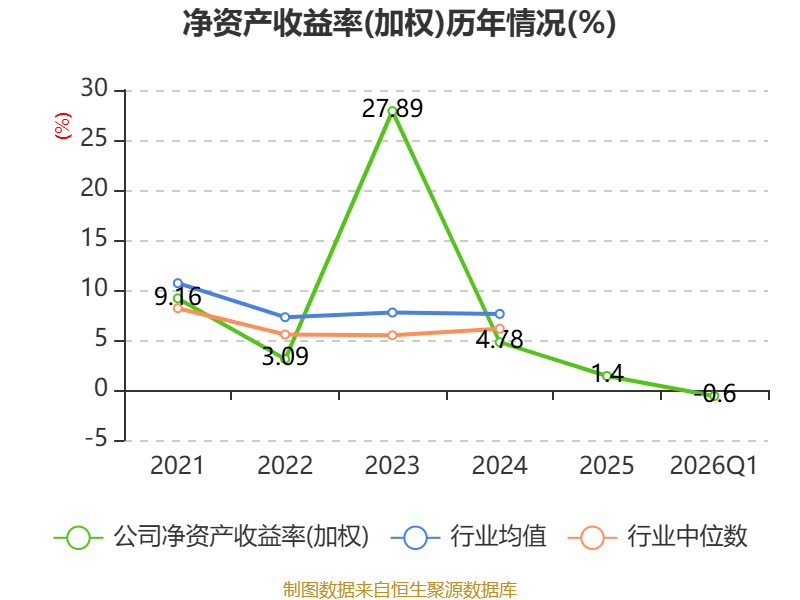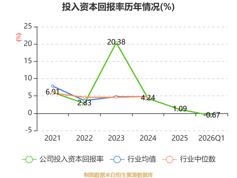 盈利能力方面, 2026年一季度公司加权平均净资产收益率为-0.6%,同比下降0.85个百分点。公司2026年第一季度投入资本回报率为-0.67%,较上年同期下降0.75个百分点。