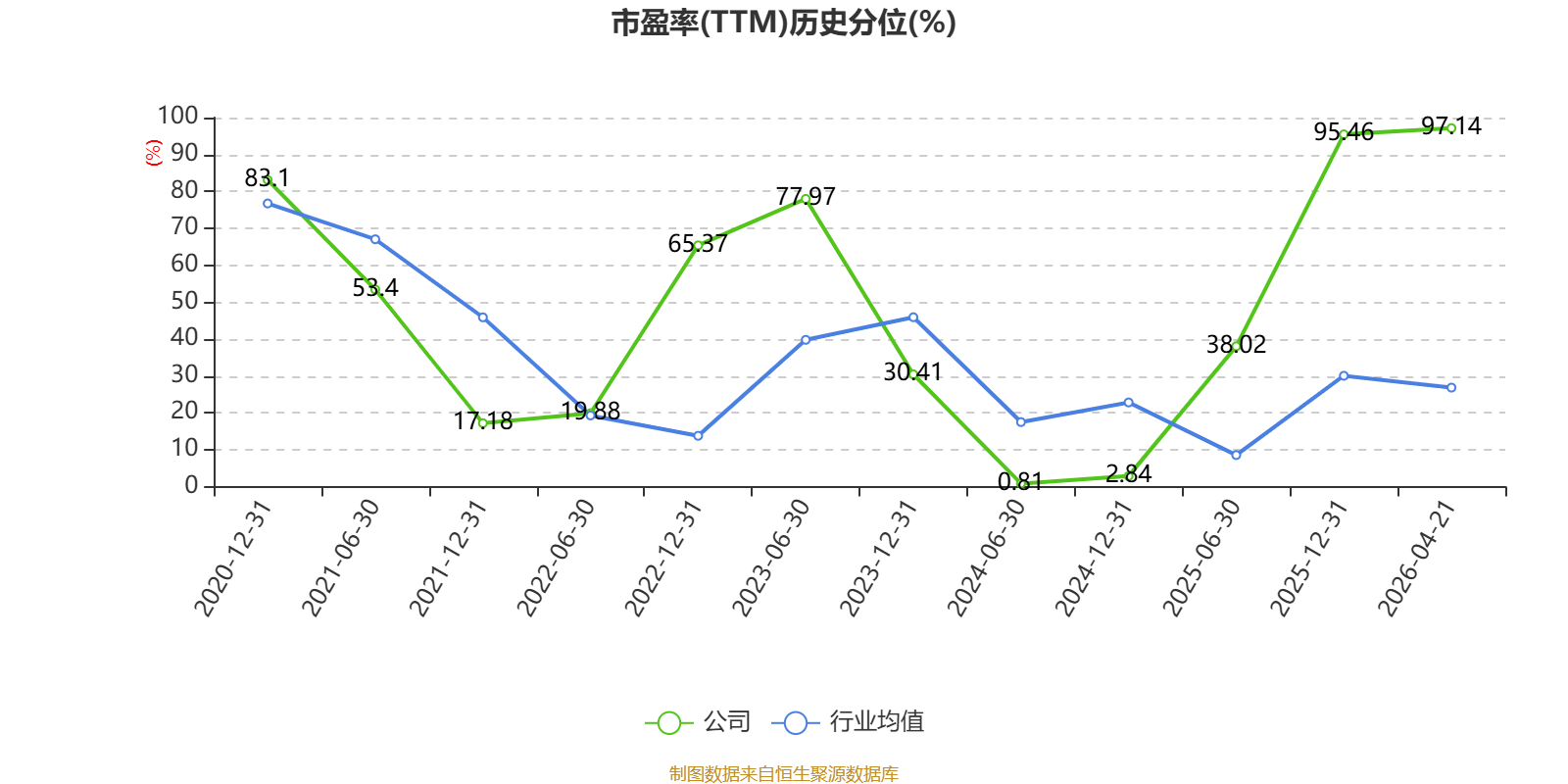市盈率、市净率为负时,不显示当期分位数,会导致折线图中断。