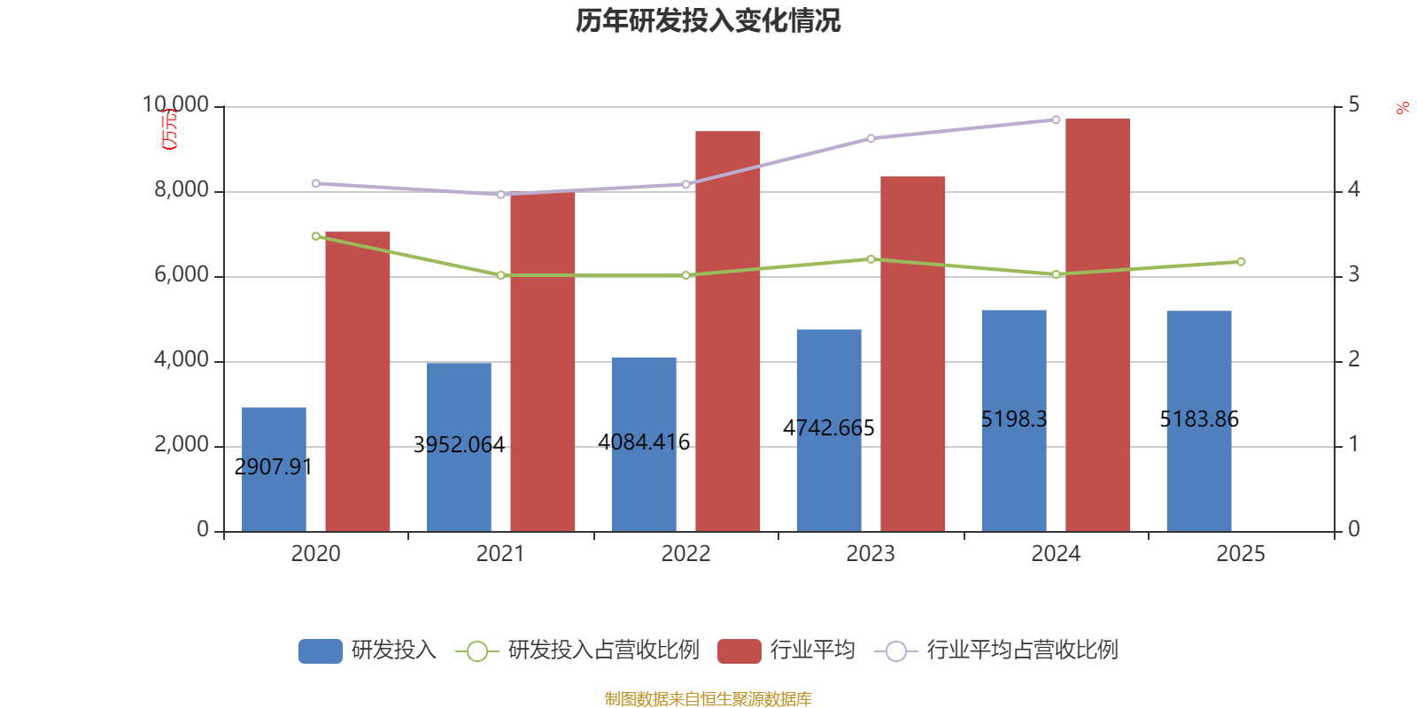2025年全年,公司研发投入金额为5183.86万元,同比下降0.28%;研发投入占营业收入比例为3.17%,相比上年同期上升0.15个百分点。此外,公司全年研发投入资本化率为0%。