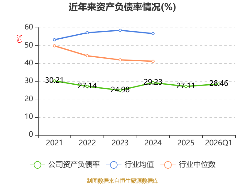 负债重大变化方面,截至2026年一季度末,公司应付票据及应付账款较上年末增加21.92%,占公司总资产比重上升3.46个百分点;其他应付款(含利息和股利)较上年末减少70.13%,占公司总资产比重下降1.9个百分点;短期借款较上年末减少100%,占公司总资产比重下降0.33个百分点;长期应付款合计占公司总资产的0.25%,上年末为0。
