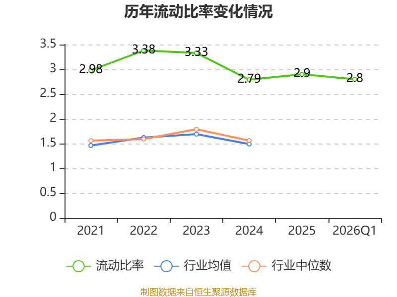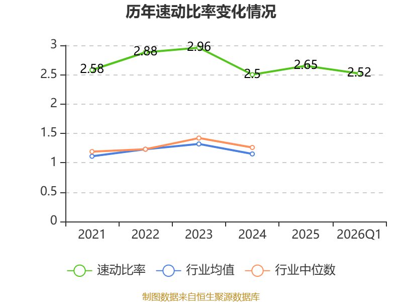 2026年第一季度,公司流动比率为2.8,速动比率为2.52。
