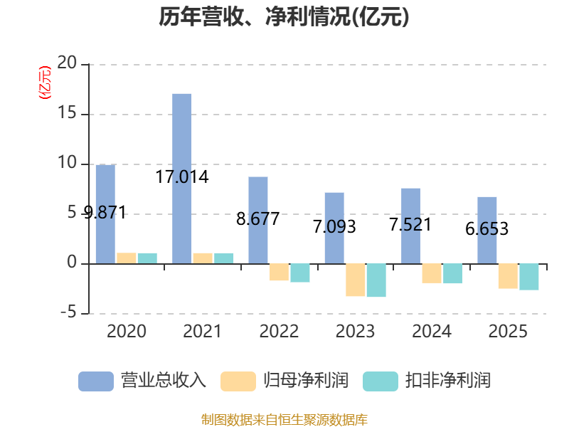 中证智能财讯大龙地产(600159)4月22日披露2025年年度报告。2025年,公司实现营业总收入6.65亿元,同比下降11.54%;归母净利润亏损2.54亿元,上年同期亏损1.99亿元;扣非净利润亏损2.69亿元,上年同期亏损2.01亿元;经营活动产生的现金流量净额为-700.28万元,上年同期为6.69万元;报告期内,大龙地产基本每股收益为-0.3058元,加权平均净资产收益率为-15.86%。