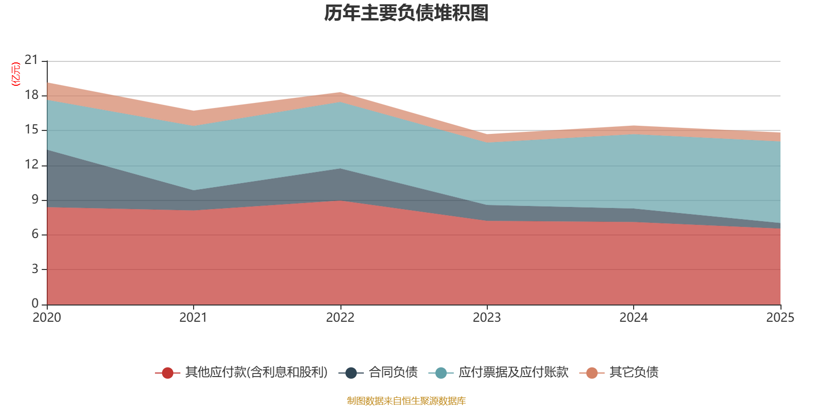 负债重大变化方面,截至2025年末,公司应付票据及应付账款较上年末增加9.65%,占公司总资产比重上升4.03个百分点;合同负债较上年末减少58.56%,占公司总资产比重下降1.88个百分点;其他应付款(含利息和股利)较上年末减少7.98%,占公司总资产比重上升0.33个百分点;其他流动负债较上年末增加6.92%,占公司总资产比重上升0.3个百分点。