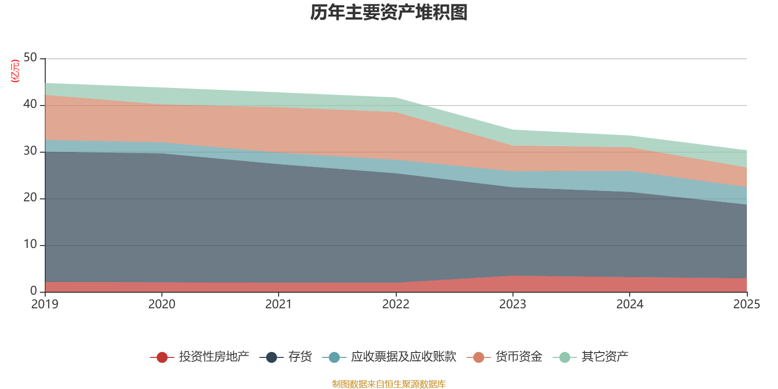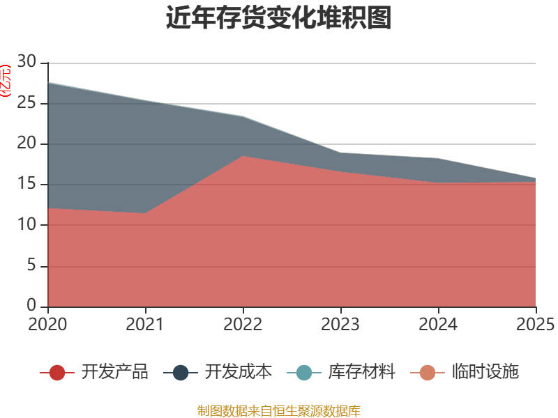 从存货变动来看,截至2025年末,公司存货账面价值为15.8亿元,占净资产的107.24%,较上年末减少2.44亿元。其中,存货跌价准备为6.86亿元,计提比例为30.27%。