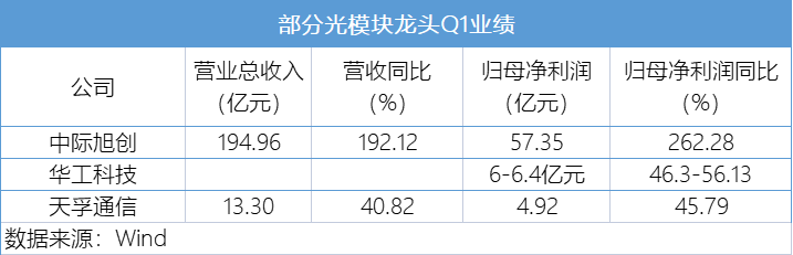 另一方面,原则上作为天孚通信下游客户的光模块整机龙头中际旭创(300308.SZ)同期披露的一季报表现却异常耀眼,仿佛产业链上下游出现深度割裂,最终导致近期算力龙头在市场上涨跌不一,走势开始逐步分化。