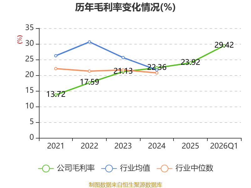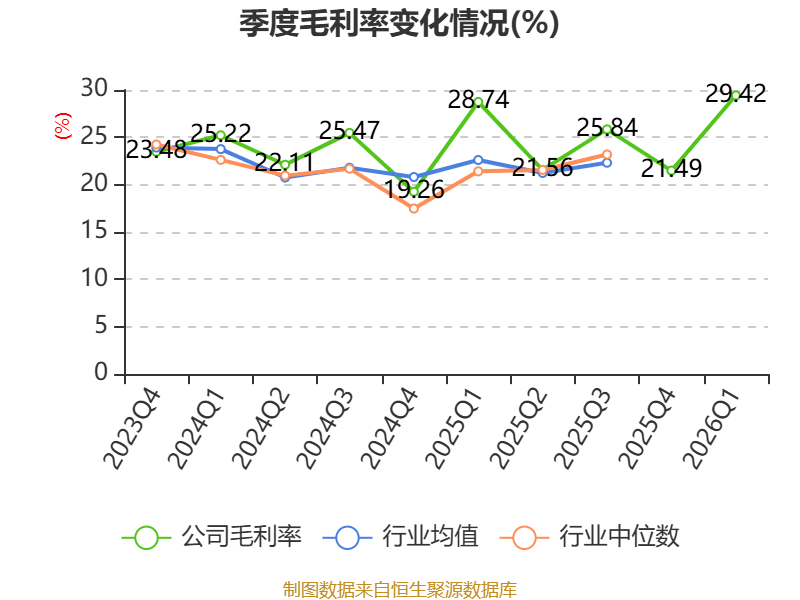 资产重大变化方面,截至2026年一季度末,公司货币资金较上年末减少15.6%,占公司总资产比重下降4.51个百分点;存货较上年末增加26.3%,占公司总资产比重上升2.3个百分点;应收票据及应收账款较上年末增加2.6%,占公司总资产比重上升1.31个百分点;其他非流动资产较上年末减少26.33%,占公司总资产比重下降1.08个百分点。