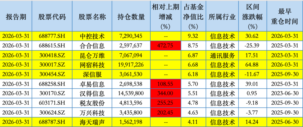 与此同时,基金经理还大幅度增持了合合信息、卓易信息、汉得信息、税友股份及万兴科技,显示出对AI应用赛道的高度集中布局。