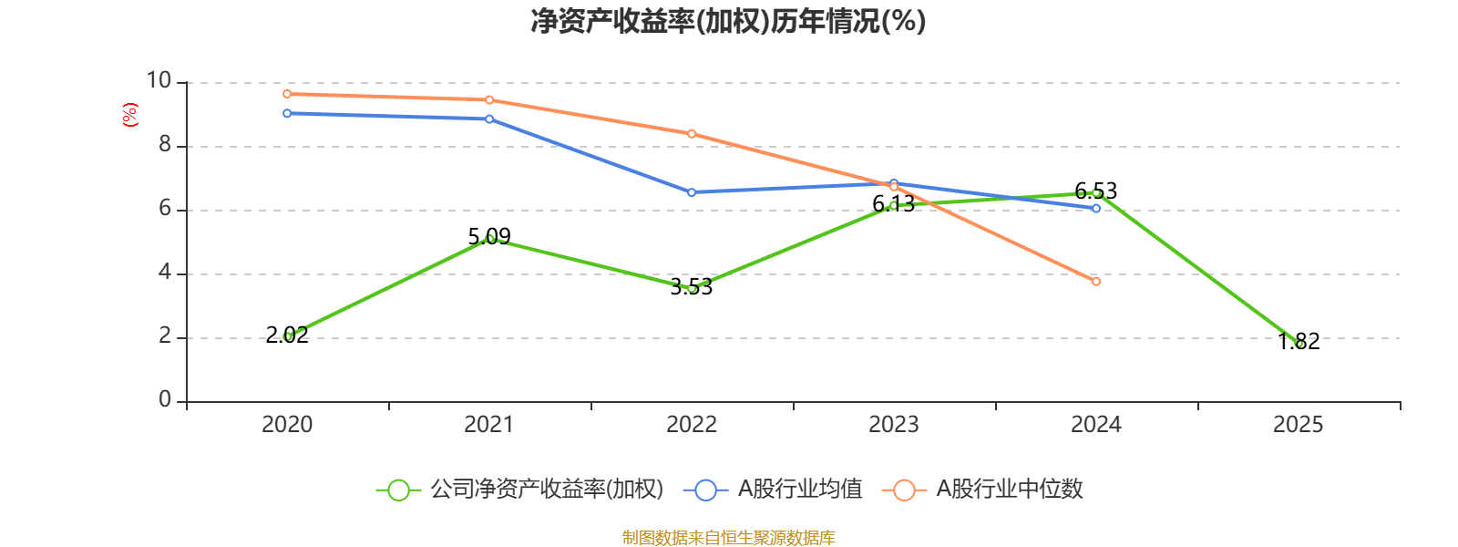 数据显示,2025年公司平均净资产收益率为1.82%,较上年同期下降4.71个百分点。
